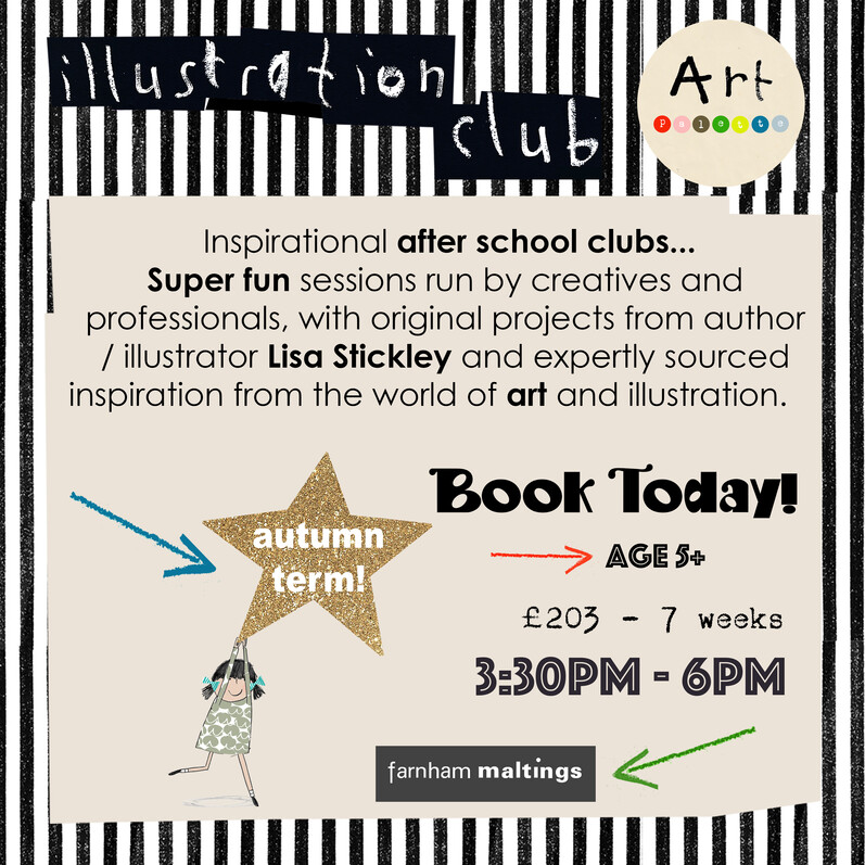 Inspirational after school clubs with ART Palette. Super fun sessions run by creatives and professionals, with original projects from author/illustrator Lisa Stickley and expertly sources inspiration from the world of art and illustration.