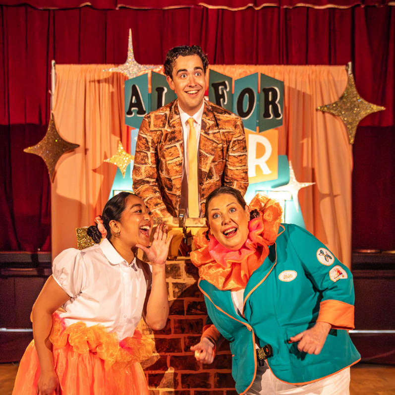 All For Your Delight tells the story of Danny, JoJo and Yazz who are on the road as The Brightcoats with their special show of magic, jokes, songs, games - some of it on roller skates!
