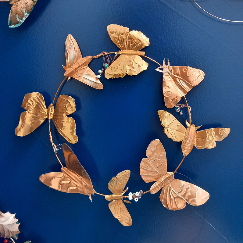 You will design your own butterfly wreath by tracing templates, scoring and cutting the foil to attach to a copper ring.