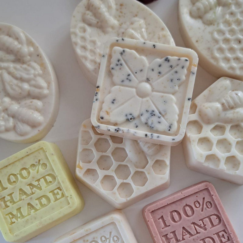 - Skin-safe mica powders and liquid colourants - Fun silicone moulds in various shapes