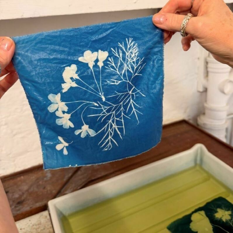 Join us at printworks for a free, friendly workshop exploring the historic process of cyanotype printing - using light, plants, and fabric to create striking blue images.