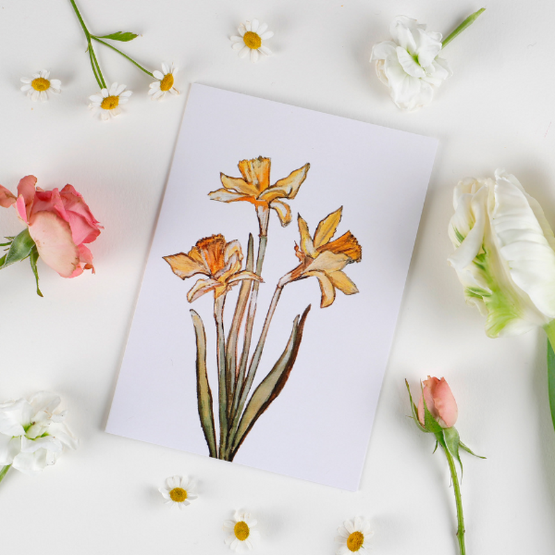 Join Clara Browton, artist and illustrator from Surrey and founder of Flower Brick, a sustainable greeting card business, for a relaxing workshop drawing and painting daffodils from life.The workshop will start with a demonstration using pencil, walnut ink and watercolours onto recycled paper. Clara will share her techniques on how she creates her paintings, focusing on composition, colour mixing and shading and highlights to make your paintings come to life.