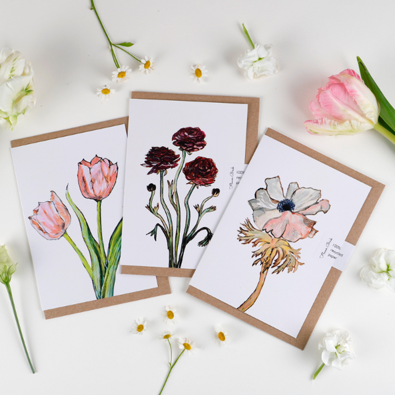 Your greetings cards will be finished of with recycled envelopes and wrapped in recycled ribbon and glassine bag so you can give them as a gift, or keep for yourself.