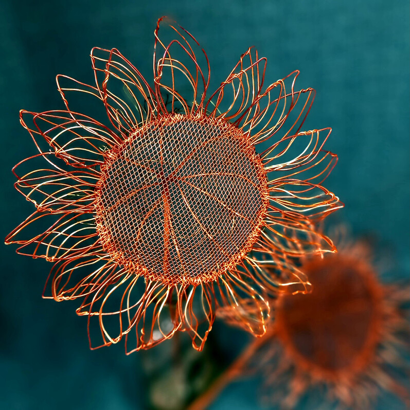 Using coloured copper wire and mesh, you will follow step by step instructions, tracing a template, on joining and layering to make this happy flower.