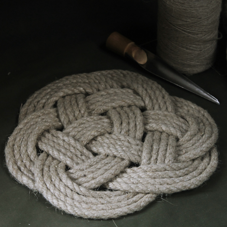 Learn to make a rope trivet (or mat) using a traditional knot pattern. You'll be working with flax rope, and will learn to use a fid to create a rope splice.