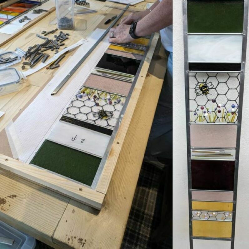 Learn how to cut and shape glass safely, then explore creative techniques using frits, powders, stringers, and paints to add depth and colour. You’ll design and make two vibrant 15cm glass panels, experimenting with layering and texture. Your creations will be kiln-fired, ready for assembly in the next session.