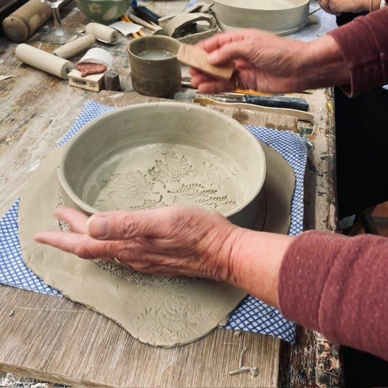 By altering the shape of a pre-made form thrown on the wheel, you'll be shown how to texture, pattern and join a slab base to your creation and add handles if desired.