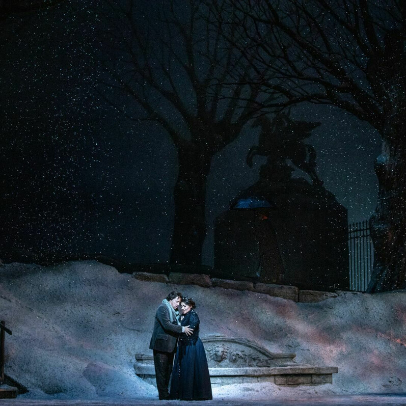 Soprano Juliana Grigoryan is the feeble seamstress Mimì, opposite tenor Freddie De Tommaso as the ardent poet Rodolfo.