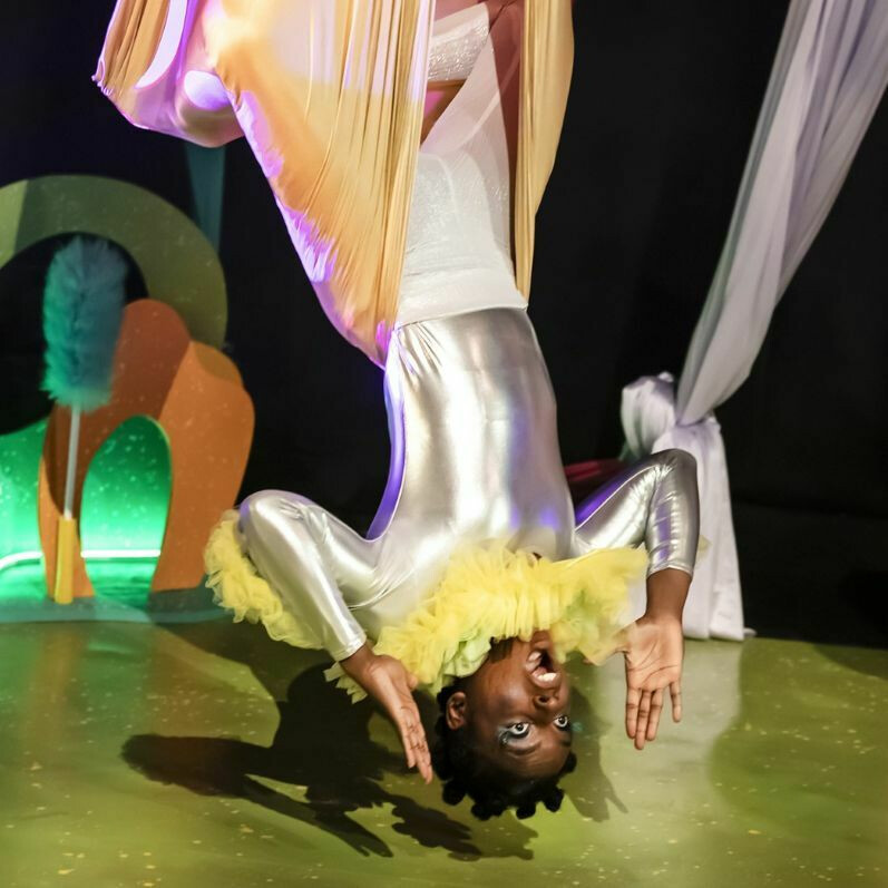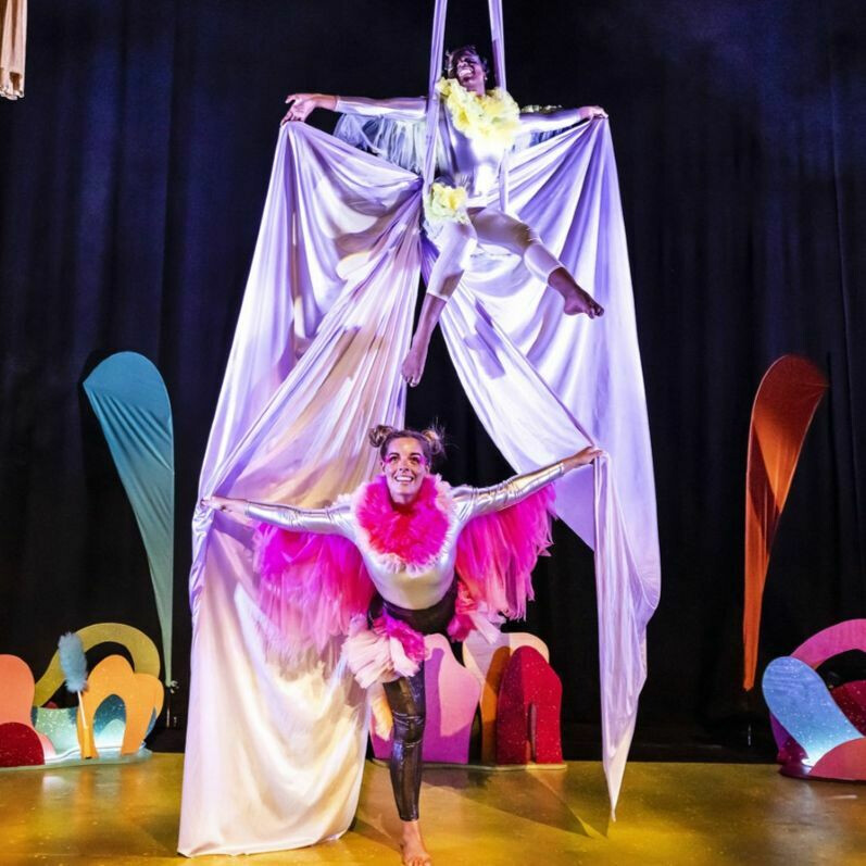 This multi-sensory, interactive show ignites the imagination and curiosity of babies who are then invited into the space with the performers to explore the baby safe set and props, including having a swing in the silks.