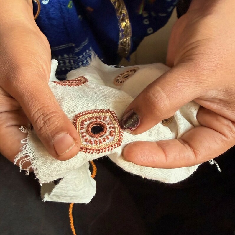 In this session, participants will be guided through the fundamentals of Ahir mirrorwork, learning how to set mirrors securely, and build decorative stitch patterns around them. Alongside traditional examples, we will also look at how this technique can be adapted for contemporary use.