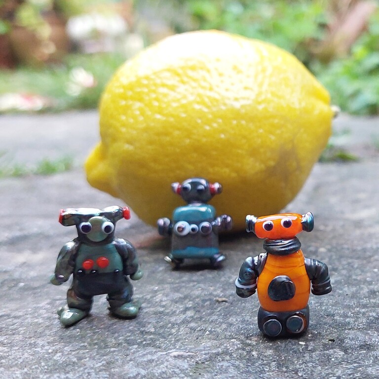 Amanda is a glass maker specialising in the miniature. She uses the lamp work technique to shape hot glass in a flame. Her work is bright, cheerful and reinvents the idea of little glass animals for the 21st century. Described as 'art with a big smile on its face', her pieces appeal to a big fanbase of Collectors keen to add a wee Dalek, toffee apple or toadstool to their cabinets of curiosities or heirloom Christmas decorations. A tiny glass Coronavirus she made in 2021 was acquired by the Science Museum. London for their Covid 19 Collection for the Nation.