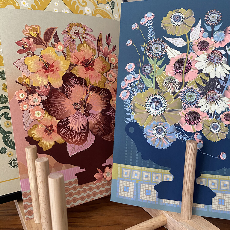 Painting, drawing and giclée printed digital illustrations form the core explorations of her practice and each design is created with thought, care and deliberation.