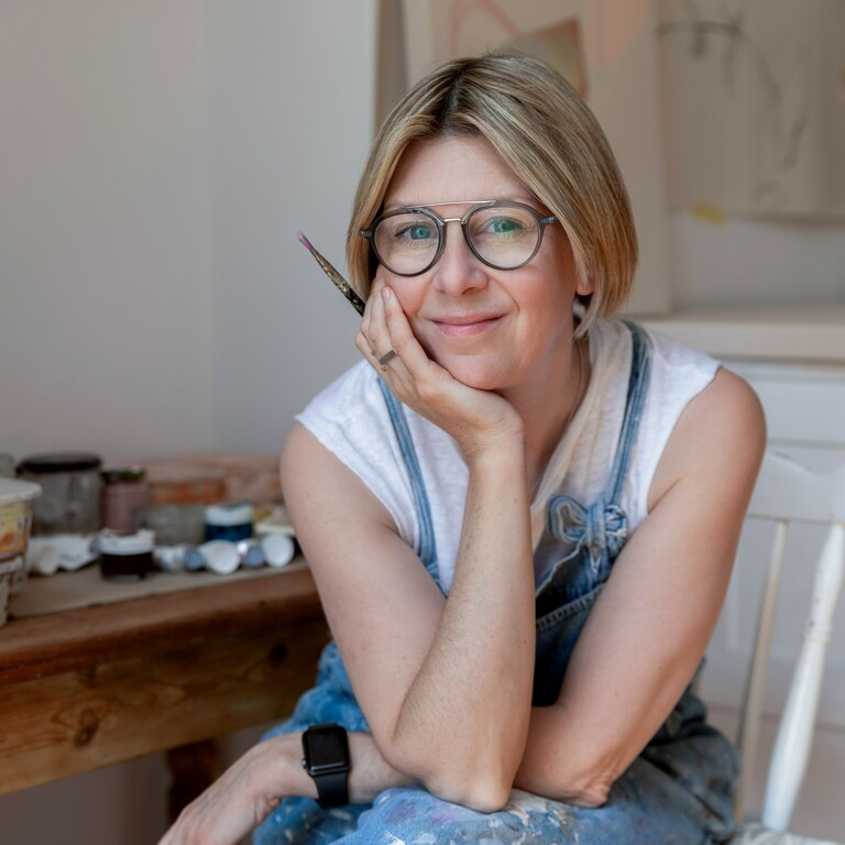 Alongside her own creative practice, she supports artists to declutter their homes, studios and schedules so they can make space for what truly matters.