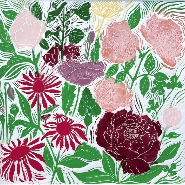 Sophie’s printmaking at Fairlight Prints focusses on two main areas, traditional hand-carved linocut relief prints and Intaglio etchings with aquatint, a lengthy process which results in tonal depth. Many of her prints are inspired by the beauty and essence of flowers and foliage in their natural form, from intricate and colourful floral designs to coastal and forest landscapes. Sophie incorporates detailed carving, incorporating the background ‘chatter’ to create movement and expression. All her prints are hand-made using traditional artisan techniques. Sophie’s prints are on display at RHS Wisley Gallery as well as other local galleries in Surrey.
