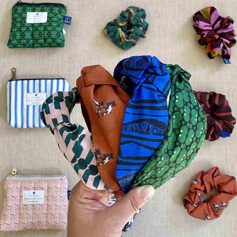 British designer Kate Whyley designs bold, original fabric prints, brought to life as beautifully made gifts. From knotted headbands to twilly scarves and fabric pouches, each piece is designed and handmade with care in small batches for unique style.