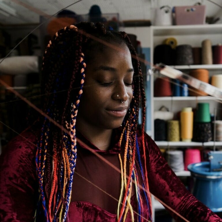 Kemi is a knitwear designer based in South East London, recently graduating from Central Saint Martins. She creates work that tells a story, narrating the significance between material, culture and craft. Taking inspiration from the process of traditional West African Textiles and translating it into contemporary knitwear, resulting in a zero-waste production at her inhouse studio at Cockpit Arts.
