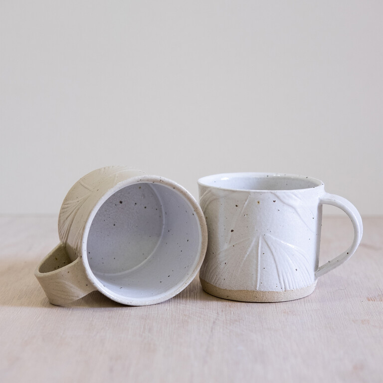 A Printmaking graduate from the University of Brighton, she combines lino-printing techniques with the tactile surface of clay, creating pieces that blend earthy simplicity with sustainable design.