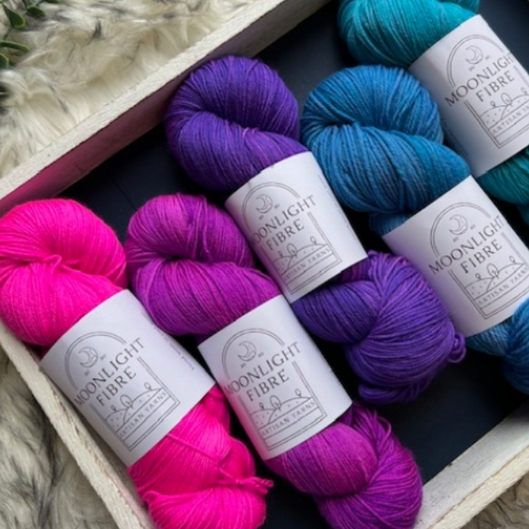 Moonlight Fibre is all about bold, hand-dyed yarns inspired by the universe and everything held within it. From electrifying neons to rich, saturated jewel tones, our colourways are designed for makers who want their projects to stand out. Each skein is dyed in small batches with love, care, and a little bit of chaos, making every one truly unique. Whether you’re chasing vibrant pops of colour or diving headfirst into cosmic creativity, Moonlight Fibre brings you yarns that dare you to create without limits.