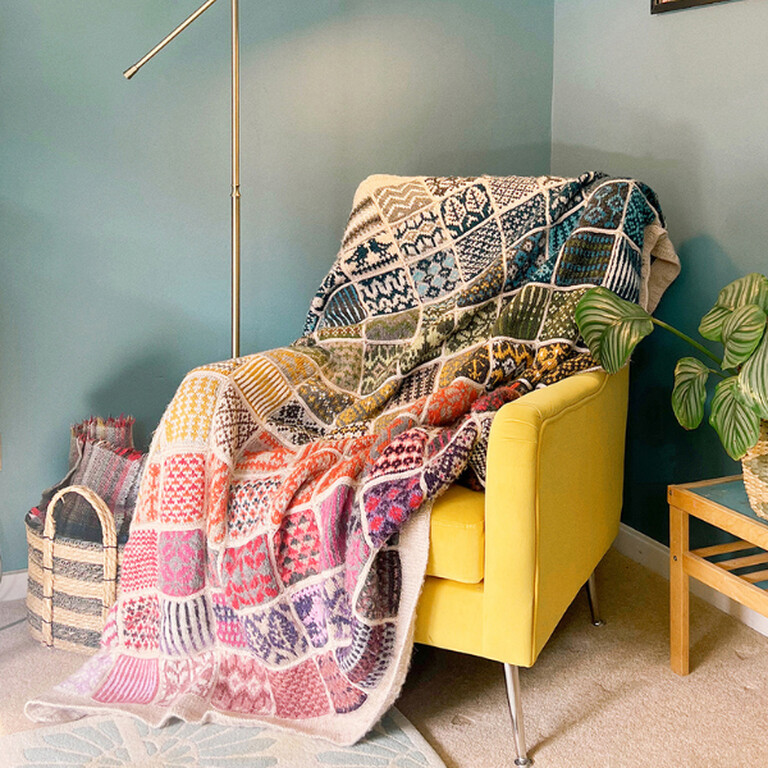 Needle and Feather’s designs are perfect for those with a passion for colour and pattern. With inspiration taken from nature, architecture and geometric patterns, these small, bitesized squares become stunning, large scale blankets as well as beautifully intricate cowls and cushions.