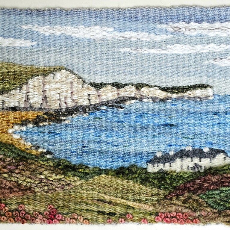 I am a weaver and dyer, and create landscape inspired woven art combined with embroidery, and highly-textured contemporary framed pieces. My work is drawn from the natural world around me. I want to capture the serenity and beauty of nature and landscapes and infuse the emotions they evoke into my weavings. Hand-dying my own yarns for weaving landscapes also gives me such an breadth of hues for each piece, and creates the delicious tonal variations that really help the weavings come alive. It really is like painting with yarn!
