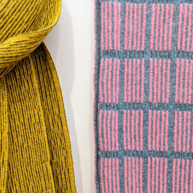Tangent Accessories are contemporary knitted accessories for men and women, designed and made by Zoe Miller. Designs have soft graphic textures combined with bold or blended colours, these are all achieved with the finest luxury lambs’ wool.
