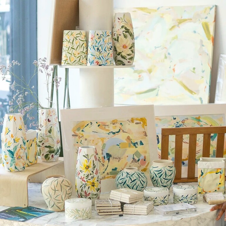 A delightful blend of sophisticated colours and detailed designs, Tasha’s small batch hand-painted ceramics, silk scarves and original art offer unique gifting ideas and one- off complementary pieces to elevate your space.